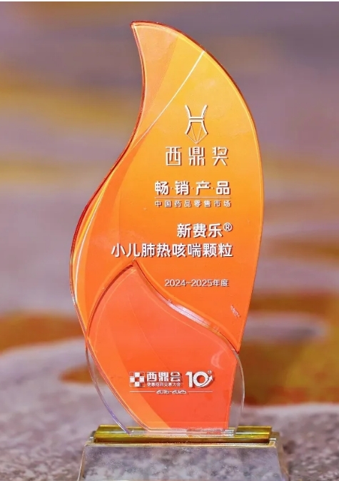 3003新葡的京药业集团旗下小儿肺热咳喘颗粒荣获“2024-2025年度中国药品零售市场畅销产品”奖